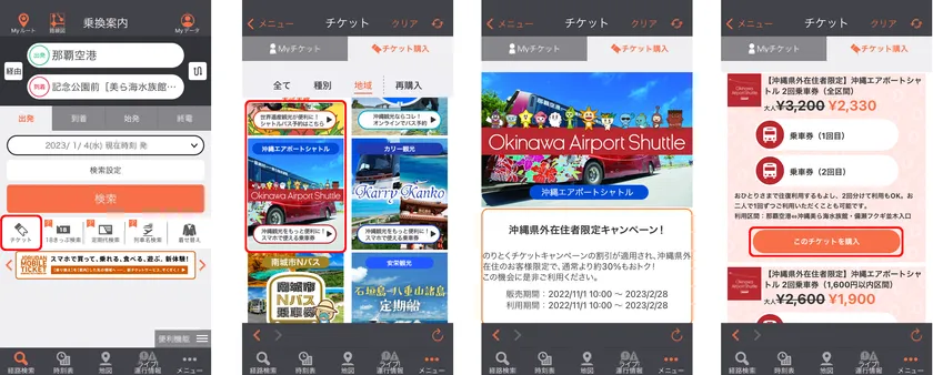 ■購入フロー「【沖縄県外在住者限定】沖縄エアポートシャトル2回乗車券(全区間)」の場合