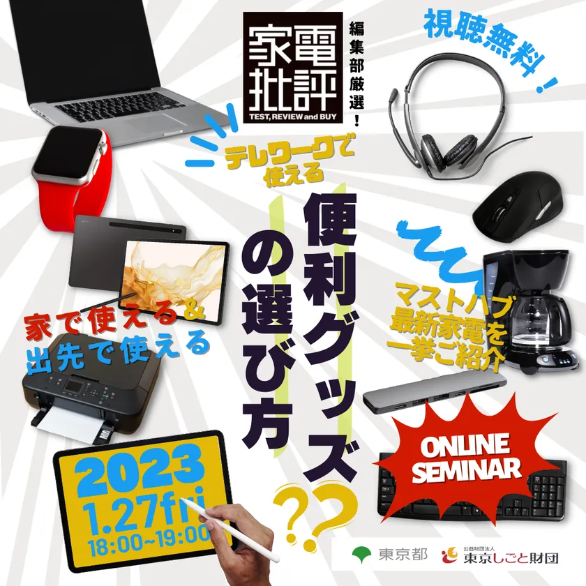 【オンラインセミナー】家電批評編集部おすすめ! テレワークで使える便利グッズの選び方(開催1/27)
