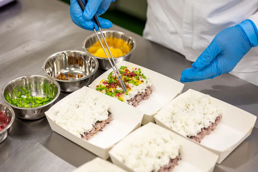 急速冷凍に凍結媒体ごとの特殊な技術を踏襲することで、さらに高品質な冷凍を実現する技術です。一般的な冷凍の場合、細胞内の水分が氷に変わる温度帯(氷結晶生成温度帯:0℃~-5℃)の通過時に、氷結晶が大きく歪(ひずみ)になることで細胞が損傷。一方急速冷凍は、急速かつ均一に冷却することで氷結晶が小さく生成され、細胞の損傷を極少化でき、うまみ成分の流出を防ぎます。さらに特殊冷凍では、冷風の湿度や冷風の当て方などの特殊技術が加わり、形状維持や調理済みの温かい食品の急速冷凍を実現。これまで困難とされていた食材の急速冷凍を可能にするとともに、従来を上回る高品質な冷凍食材を生み出します。