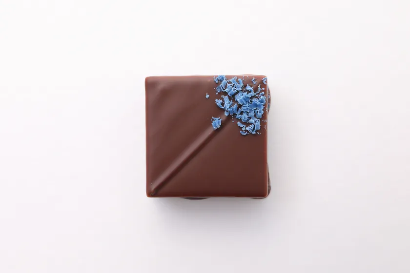 ほのかな酸味とミルキーでキャラメルを感じるミルクチョコレートを使用し、スミレのアロマで優しく繊細な香りをまとうガナッシュに仕立て、力強く甘酸っぱいカシスを合わせました。