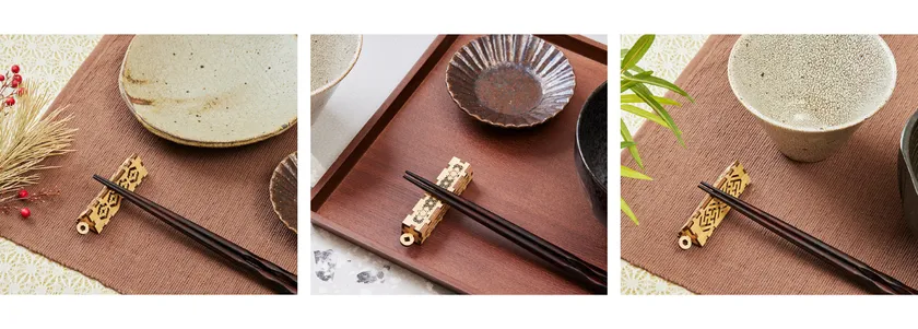 また、スイッチ&コンセントカバーは20個まとめ買い、楊枝入れ付き箸置きは25セットまとめ買いで、こちらもオリジナルの名入れ彫刻を行います。店名や会社名などを彫ることで、オンリーワンの特別な空間に。旅館やレストランなどの店舗使用も。