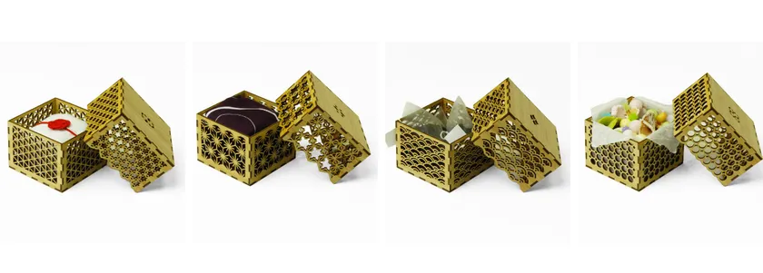 伝統的な和柄の文様を細かくレーザーカットで表現。一見シンプルでモダンなクラフト商品ですが、手に取って自分で組み立てるうちに、日本古来の文様の意味を視覚と触覚から感じる事が出来る製品です。