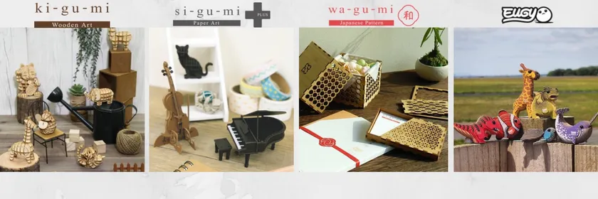 ワグミは竹素材の、工具や接着剤を使わず手軽に組み立てられるクラフトパズル商品です。