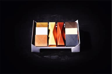 福岡県八女市の星野製茶園の八女抹茶を使用した、ビター・ミルクと抹茶・ホワイトの2種類の生チョコです。ビターとミルクは、フランス産の有機フェアトレードチョコレートとスイス産のフェアトレード有機ミルクチョコを2層にした生チョコです。
