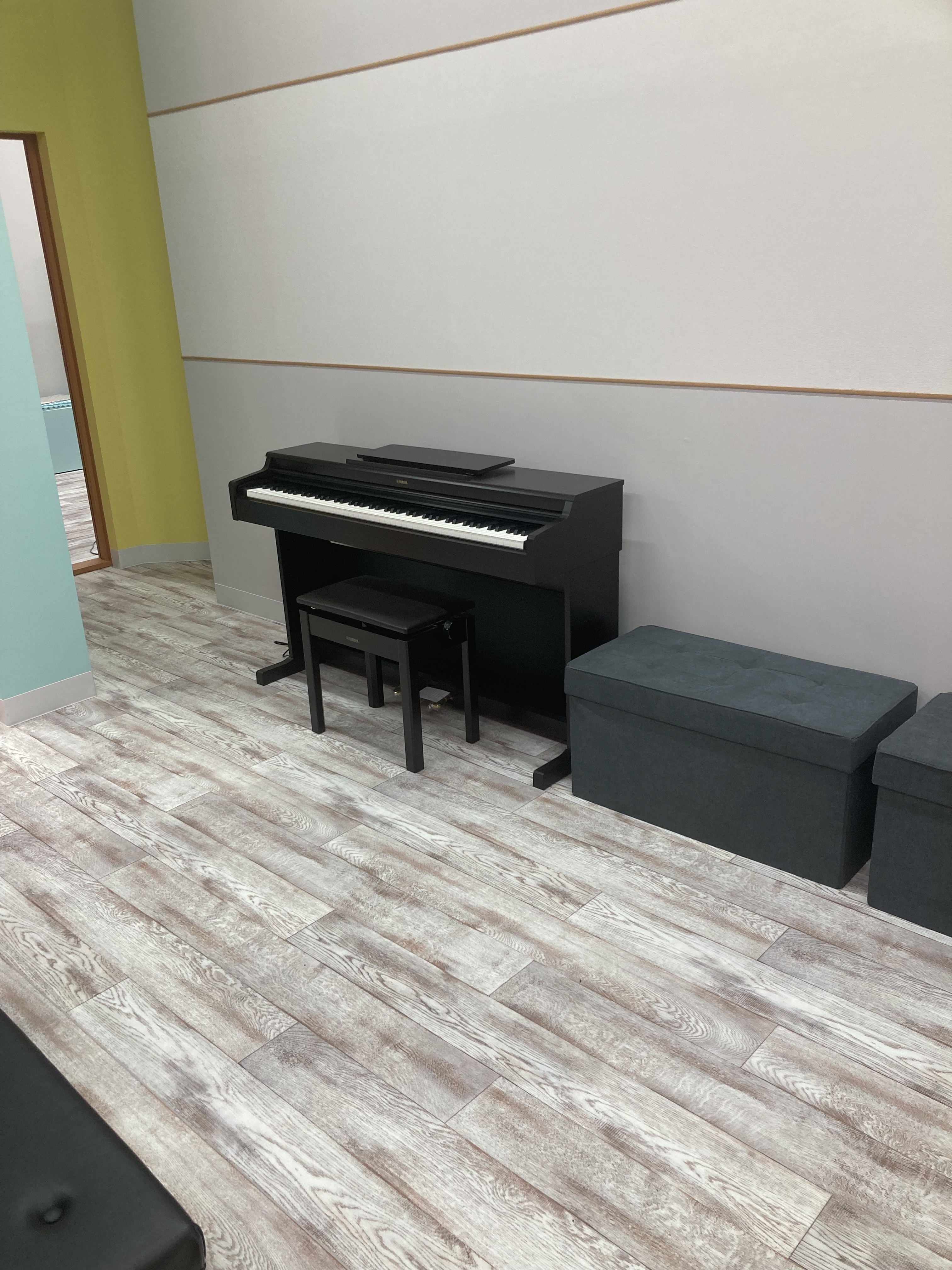 ワタナベミュージックラボは「ピアノをより身近に感じてほしい」「純粋にピアノを楽しめるような教室にしたい」と、敷居を下げる意味でも“商業施設の中でお買い物ついでに行ける場所”に出店し続けています。この想いに共感したコウキ商事は奈良市のイオンタウン富雄南にピアノ教室を2年前にオープンしましたが、今では曜日によって空き待ちが出るほどの人気教室になっているようです。レッスン室はもちろんグランドピアノを設置し、10畳程度の室内にゆったり置いてあります。そのため、コロナ禍における密室が気になる方にも安心して通っていただける教室を意識しています。