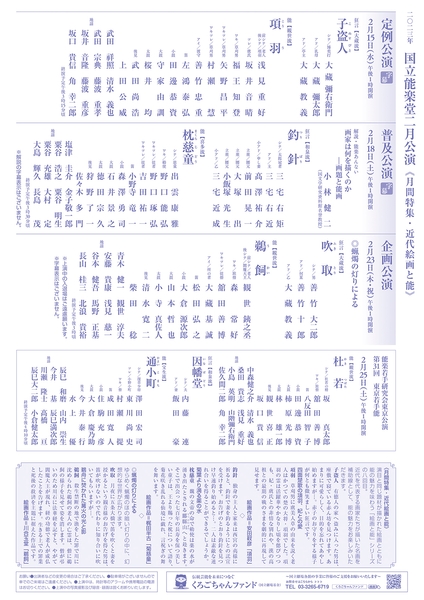 国立能楽堂(東京都渋谷区千駄ヶ谷4-18-1)の2月主催公演が下記の通り上演されます。蠟燭の灯りによる上演等、盛り沢山で皆様のご来場を心よりお待ちしております。