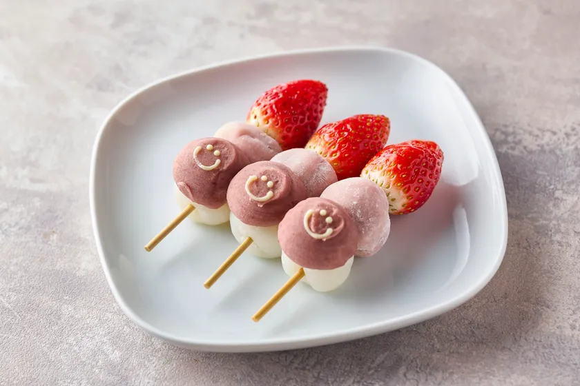 いちご、いちごピューレ入りの小豆こしあんを、いちごパウダーを練りこんだお餅で包んだ大福、いちごあん白団子の3種がセットになった東武限定品。