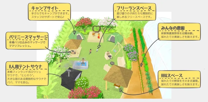 バリ島のような非日常感!親子でリフレッシュ&食育を学べる 1日1組限定・完全プライベートキャンプ場「太陽の村」 オープンに向けたクラウドファンディングを1月31日まで実施