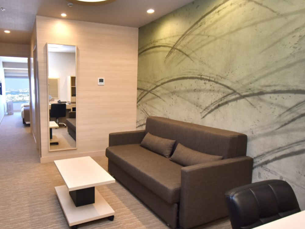 この度、ハウスキーピング業務を受託いたします「オディシススイーツ大阪エアポートホテル」は、客室は15階、16階、19階~24階、26階の全258室を設け、約200室が30平方メートル超の広さで、そのうち158室がリビングとベッドルームの独立したスイートタイプのお部屋。全室にシモンズ製のワイドサイズベッドを設置され、日本らしさを感じる和モダンな客室。各フロアにセキュリティーゲートを備え、まるで家に居るように過ごせる広々とした空間で、安心・快適なホテルライフをお過ごしいただけることを謳っておられます。