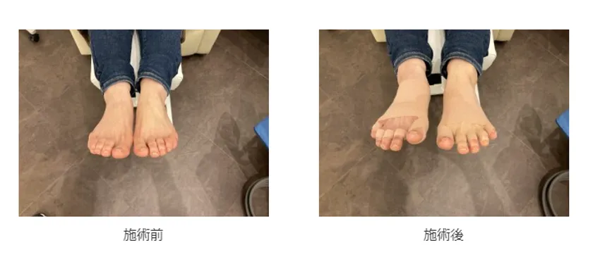 テーピングは保存療法として最も効果的な手段で、足ゆびを補整し理想的な形を作り出すことが可能です。