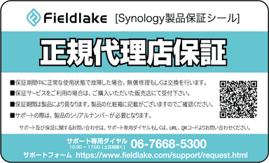 ※Fieldlake代理店取り扱い製品が対象となります。目印は以下のシールとなります。
