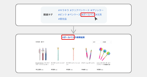 ハッシュタグを介した検索により回遊率向上をサポート