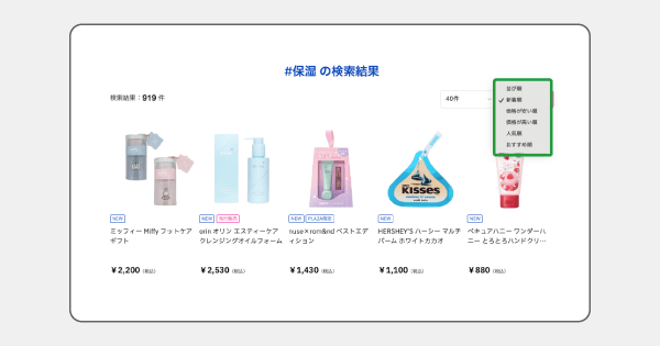 ハッシュタグに紐づいて量産されるランディングページによりSEO効果が期待できます。またEC商品検索・サイト内検索エンジン「ZETA SEARCH」との連携により、ランディングページ内で商品の並び替えが可能となり、CX向上にも寄与します。