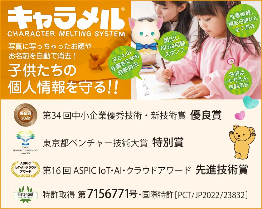 写真に写ってしまったお名前やお顔を自動消去する クラウドサービス「キャラメル」がバージョンアップ! 代理店販売も開始!