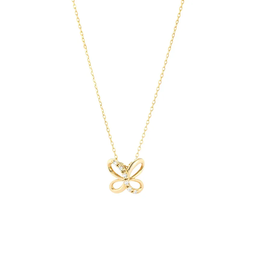 広い世界の中をどこまでも自由に、そして軽やかに飛んでいく蝶。ダイヤモンドとイエローゴールドのラインで柔らかなフォルムを描き蝶が羽ばたく姿を表現しました。優しい丸みのあるシルエットが、春の装いにさりげなく華を添えます。蝶は美の象徴とされるほか、「飛翔」「上昇」の意味を持つラッキーモチーフ。ご自身のアミュレットジュエリーとして、また新たな生活を迎える方へのギフトにも相応しいアイテムです。