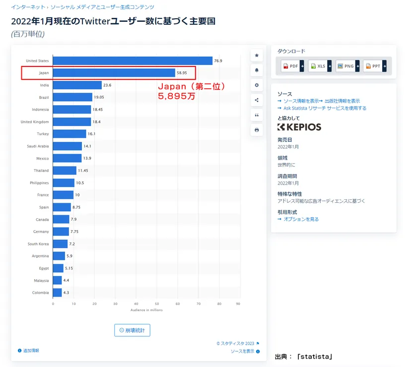 Twitter国内ユーザー数:5,895万(参考:「statista」より)
