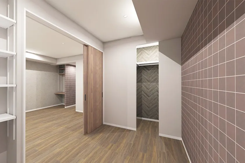 アールフィーノの住戸は平均的な天井高さが2.6メートルと一般的な賃貸住宅に比べ20センチ程高く、ゆとりの室内空間です。同じ平米数でも圧迫感がなく広く感じ、明るく開放的に暮らせます。背の高い家具を置いても狭く感じにくいのもポイントです。また、各住戸には使いやすさに配慮した充実の収納スペースを配置しています。大人気のパントリー収納、ウォークインクローゼット、シューズクローゼットなど、暮らしに役立つ収納が満載です。