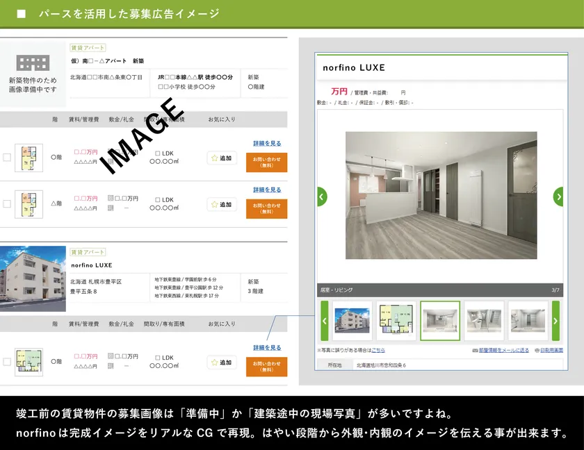 ・家賃相場よりも強気な家賃設定でも入居が決まるノルフィーノ