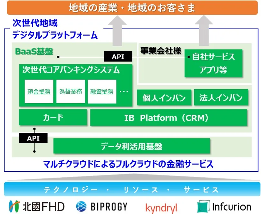 株式会社北國フィナンシャルホールディングス(本店:石川県金沢市、代表取締役社長:杖村 修司、以下 北國FHD)は、BIPROGY株式会社(本社:東京都江東区、代表取締役社長:平岡 昭良、以下 BIPROGY)、キンドリルジャパン株式会社(本社:東京都中央区、代表取締役社長:上坂 貴志、以下 キンドリルジャパン)、株式会社インフキュリオン(本社:東京都千代田区、代表取締役社長:丸山 弘毅、以下 インフキュリオン)と共同でマルチクラウドによる次世代地域デジタルプラットフォームの構築を目指した検討プロジェクトを開始することをお知らせします。