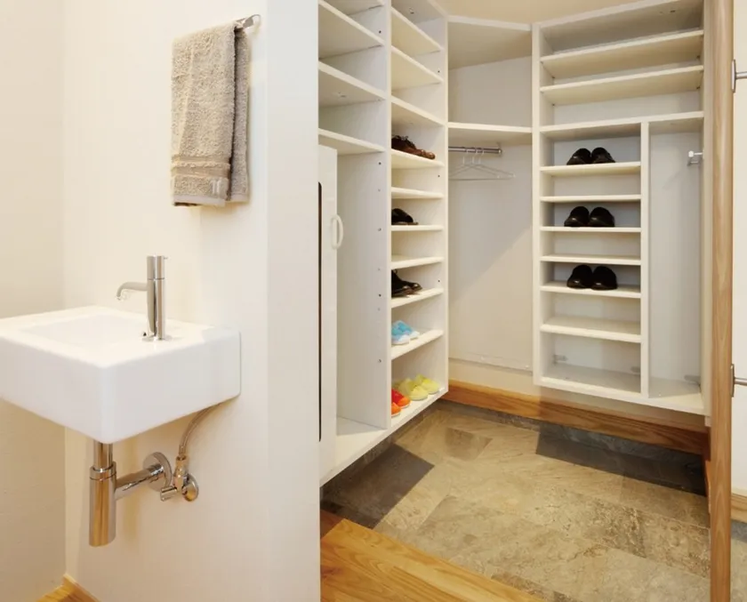 玄関ホールに洗面コーナー ウイルスや菌を部屋に持ち込まずに手洗いを