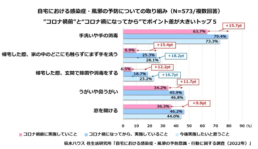 住生活研究所「自宅における感染症・風邪の予防意識・行動に関する調査(2022年)」