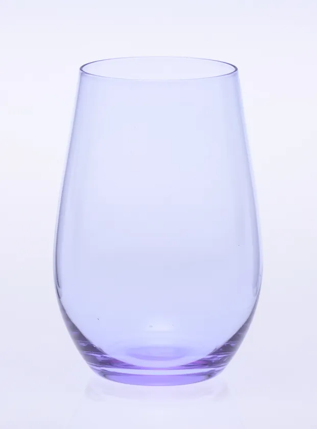 「ネオジム」には特定の光を吸収する性質があるので、太陽光の下では紫色に、蛍光灯の下では水色に変化する特徴があります。