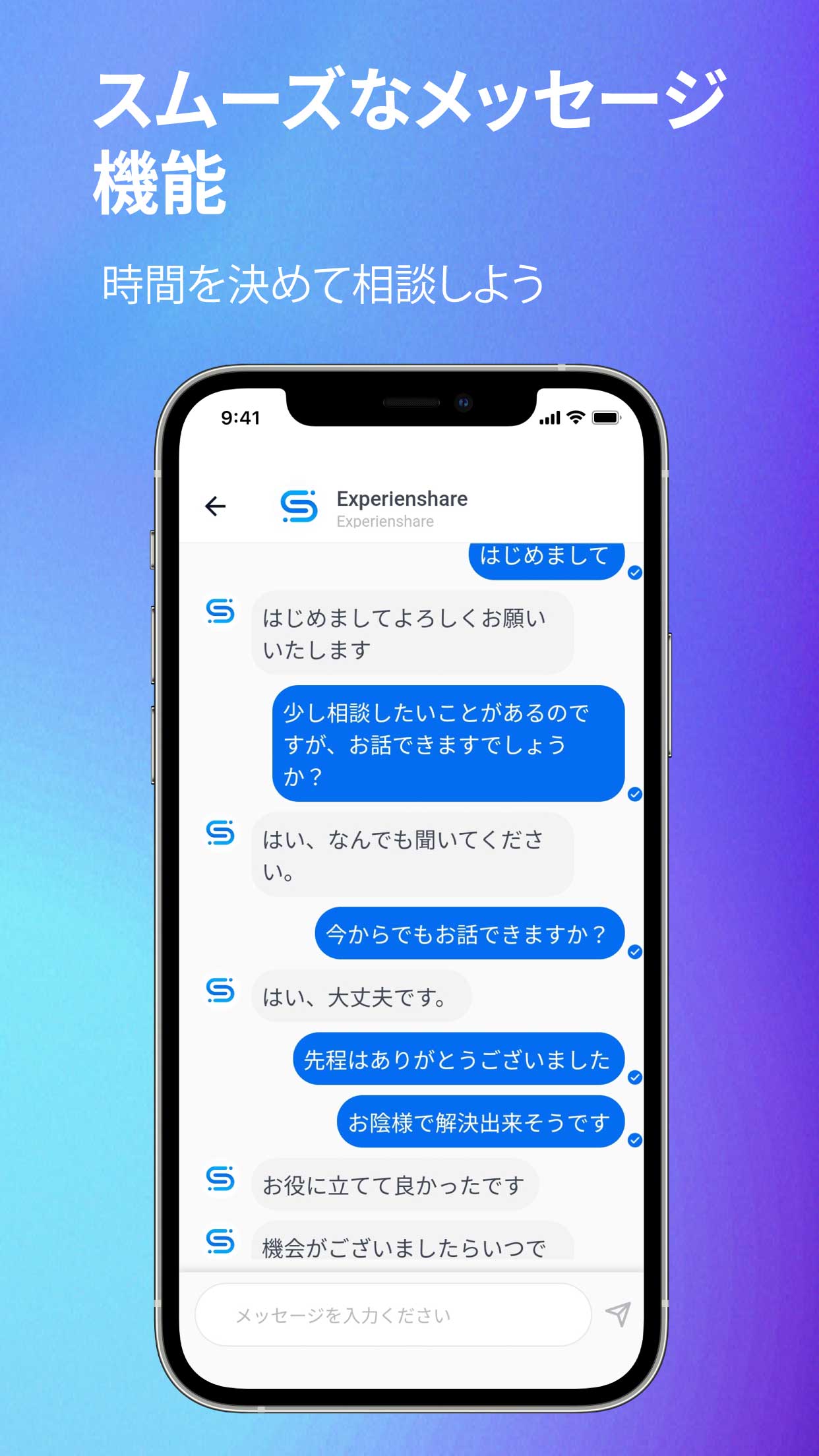 『Experienshare』は、Experiencer(スキル登録者)と相談者が直接声やビデオ通話でコミュニケーションをとることができ、スピーディに相談者の学びに繋げる通話アプリです。