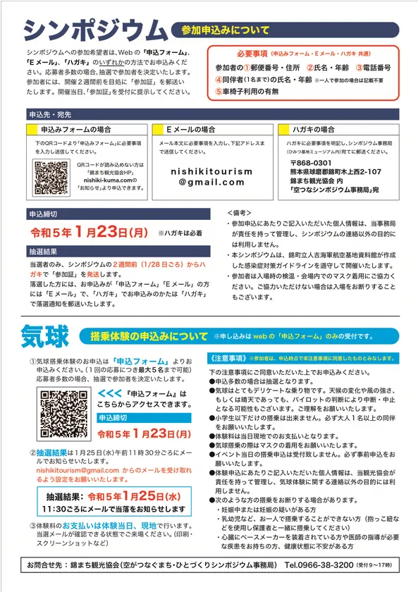 シンポジウムへの参加希望は、webの「申し込みフォーム」「Eメール」「ハガキ」のいずれかで申し込みください。応募者多数の場合、抽選を行います。
