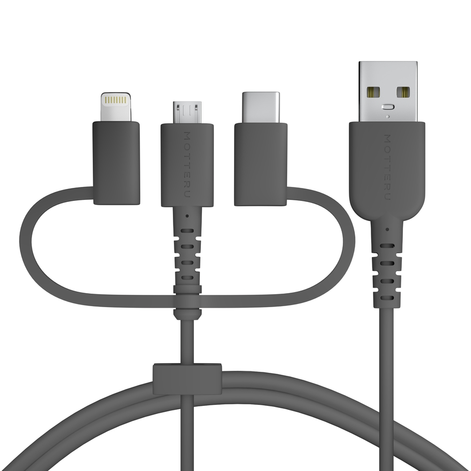 MOTTERU(持ってる)と安心!1本でmicroUSB/Lightning/Type-Cに対応する柔らかくて断線に強い3in1ケーブル