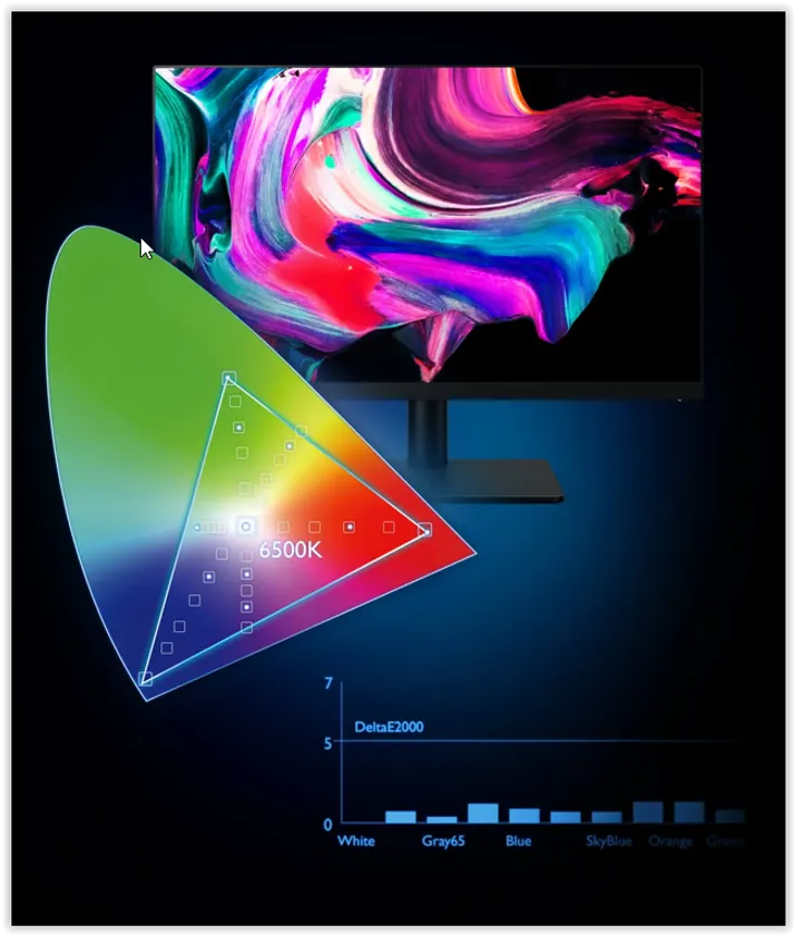 sRGB / Rec.709カバー率99%の広い色域と10億7000万色の表示色を実現しており、繊細な編集作業をより快適に行うことが可能です。複数の色空間のカラー標準に対応しているため、写真編集や印刷物、映像編集に必要な色を正確に再現します。