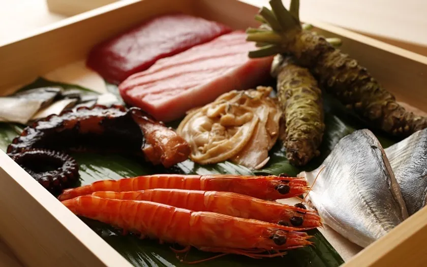 厳選した上質の「ネタ」は、昔ながらの上段の氷室に氷を入れ、湿った冷気が下へ流れることで下段の食品(ネタ)を乾燥させることなく冷やすことが出来る「木製冷蔵庫」で魚の旨味が熟成するよう徹底管理し、江戸前の仕事を施しています。