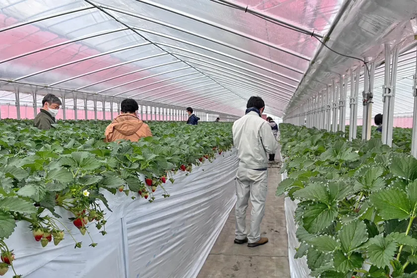 ハウス内の環境管理用センサーを導入し、24時間外出先からもハウス内の状態を確認、管理している他、自動換気システムや炭酸ガス発生装置などを導入することで、苗の病気などを抑え、より高品質ないちごの栽培を行っています。