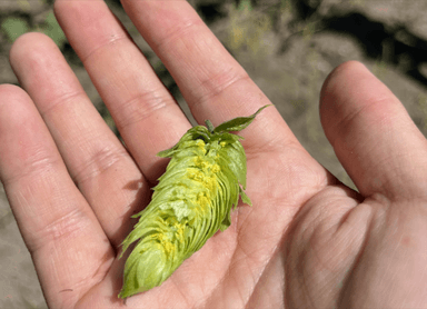 「これがビールの魂だ」と白鷹ホップの農家が表現。黄色い粉(=ルプリン)