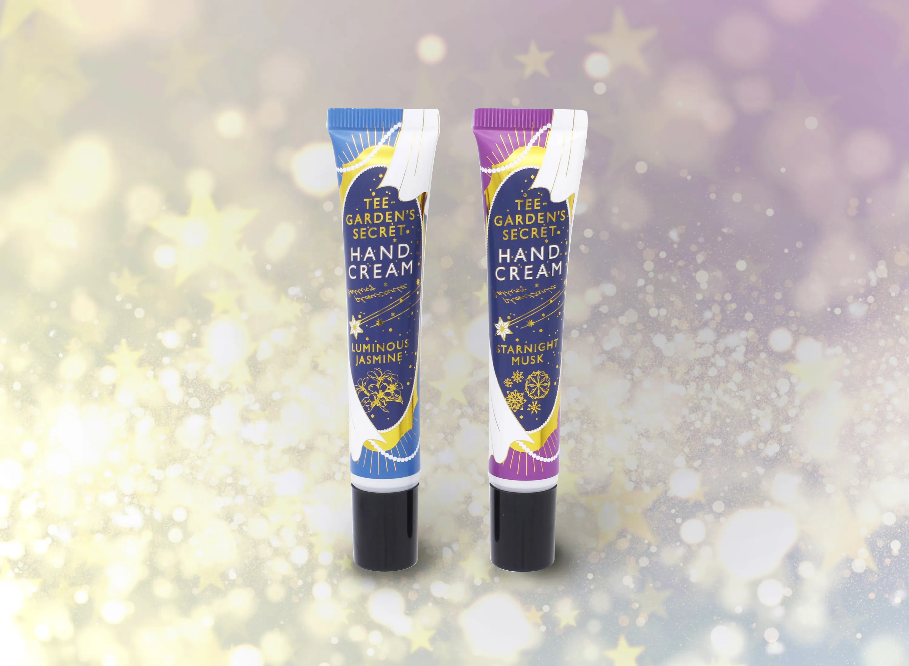 ふと偶然出会えた流れ星がコンセプトの「Teegarden’s Secret Hand Cream(ティーガーデンズシークレットハンドクリーム)」。香りは、ルミナスジャスミンとスターナイトムスクの2種。星空と香りに包まれる贅沢な秘密のひとときをお楽しみください。