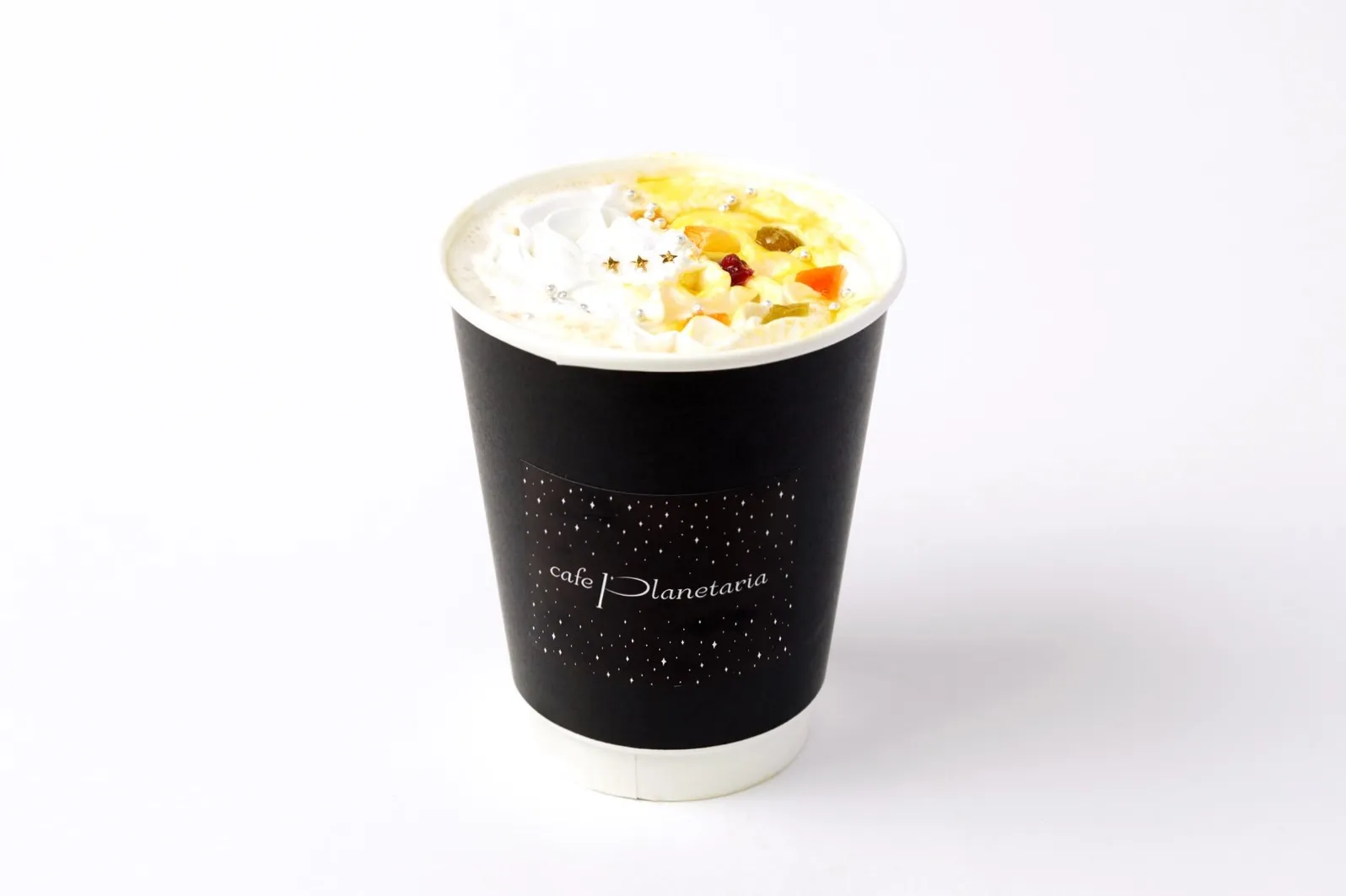 館内のカフェ「Cafe Planetaria」では、期間限定で『Orion au Lait(オリオン・オ・レ)』を販売中。冬の夜空を彩るオリオン座とその脇に輝く星雲をとじ込めたホットドリンク。オレンジシロップの爽やかな甘みとカフェオレの苦みが相性抜群の一杯です。ここでしか出会えない美味しい宇宙をお楽みください。
