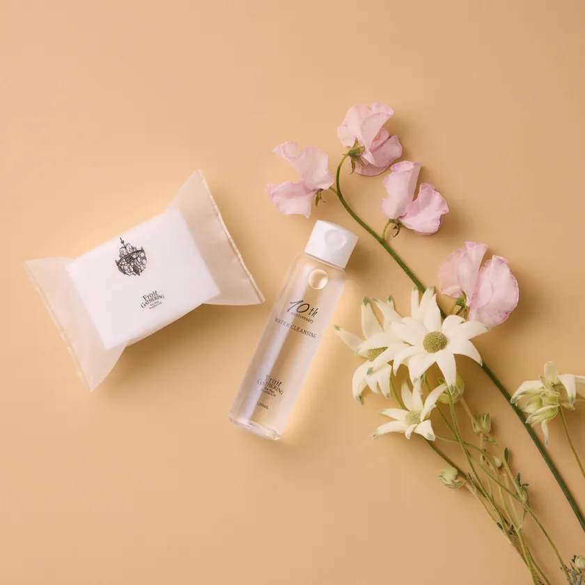 以前より店頭のタッチアップの際に使用している「フルーツギャザリング オリジナルウォータークレンジング」。スタッフはもちろん、お客様からも商品化希望の声を多く頂き、今回オリジナル ウォータークレンジング(100mLサイズ)を数量限定で製造しました。