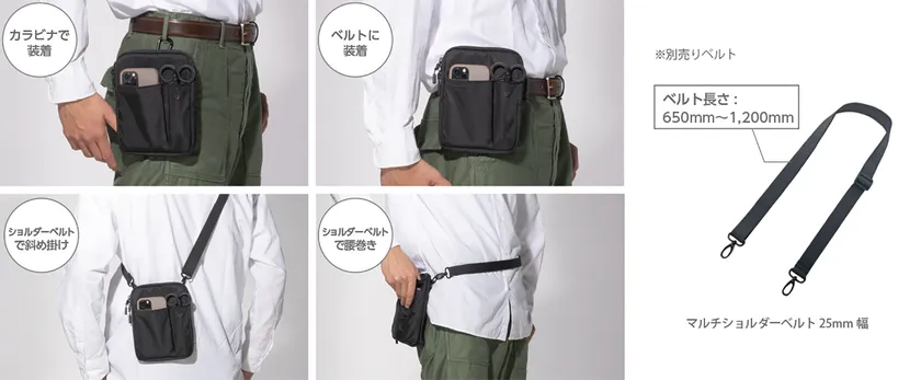 ・用途に合わせてマルチに身に付けられる(ショルダーベルトは付いていません)