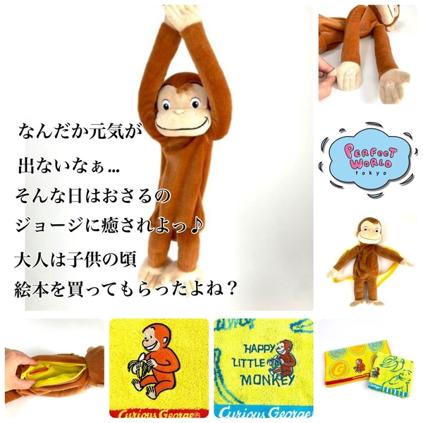 子供は大好き!大人は懐かしい!おさるのジョージグッズに、ぬいぐるみリュックやぬいぐるみポーチが仲間入りしました♪ほかにもタオルハンカチやスポーツタオルなど賑やかなラインナップ。ぜ~んぶご紹介させてください!