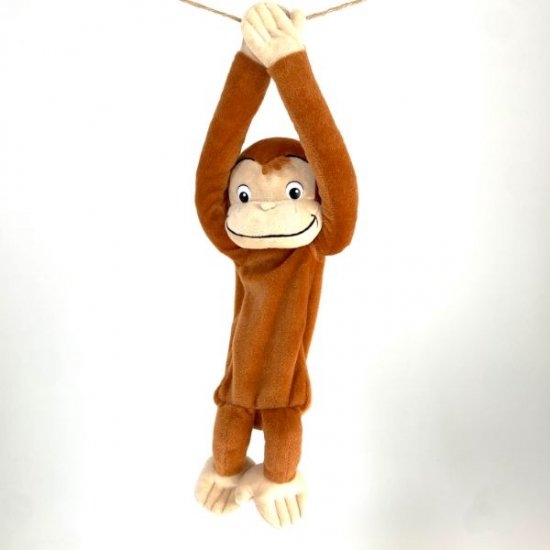 続いてはジョージのぶらぶらぬいぐるみポーチ♪何でも知りたがりやのジョージの性格は子供とも似ていますよね☆好奇心旺盛そうなお顔をしています。