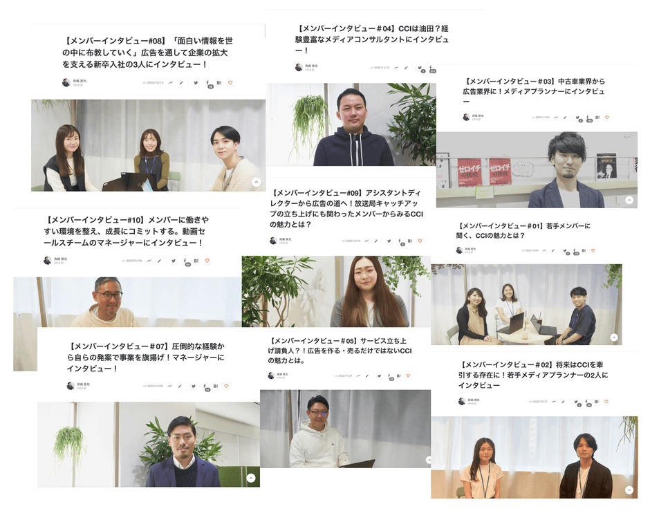 すでにCCIをご存じの方はもちろんのこと、まだCCIをご存じない方にも、CCIの社風や文化、メンバーのキャラクターが伝わる内容をお届けしています。