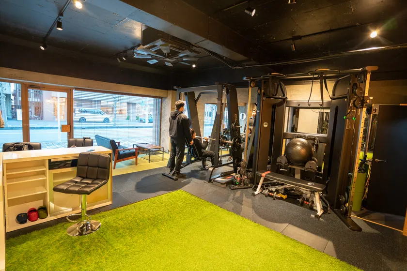 施設内。パーソナルトレーニングに必要な機材一式を揃えています