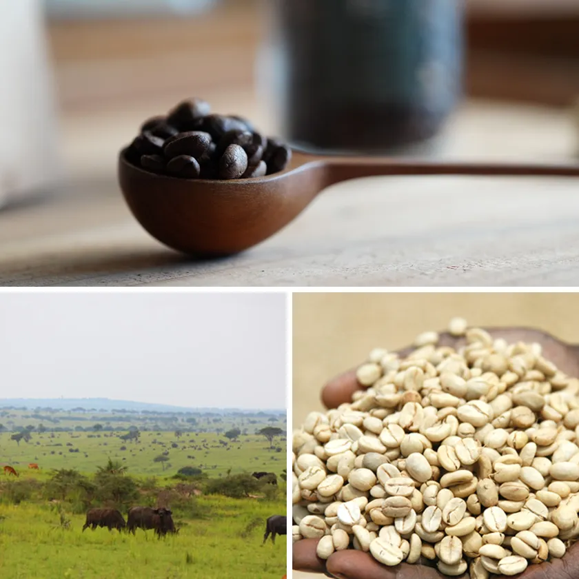 大自然が広がるアフリカのウガンダで採れたコクのある味わいと後味がすっきりとした特徴の豆をベースに、マイルドな甘みのルワンダ産スペシャルティグレードの豆と深みを出すブラジルとコロンビアの豆をブレンド。