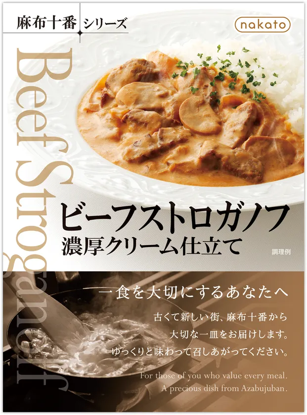 nakato「麻布十番シリーズ」から 人気のビーフストロガノフはじめ5品をリニューアル発売 賞味期限を「年月表示」へ変更し2月より順次出荷
