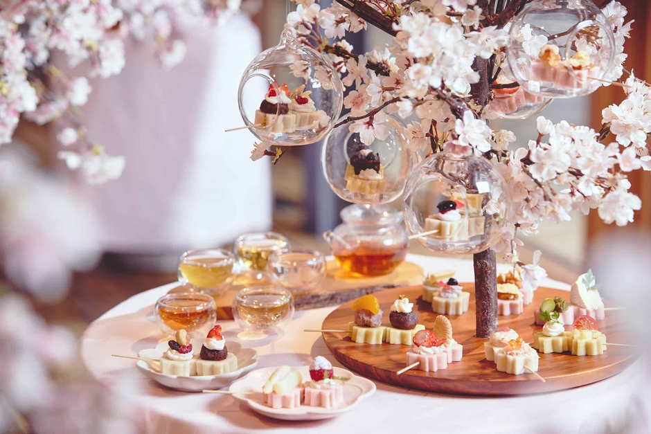 花咲く春の季節にちなみ、お花見団子アフタヌーンティーを提供します。これは、桜型をした20種類のお花見団子と5種類のお茶をセットで楽しめるメニューです。提供するのは、桜の木で作り、より春らしさを演出するスタンド。伝統的な3段スタイルのものをアレンジし、桜型のお花見団子を花びらに見立て、桜の木に咲くようにあしらいました。お花見団子を食べるだけでなく、桜の木のスタンドを眺めてお花見気分を味わうことができます。