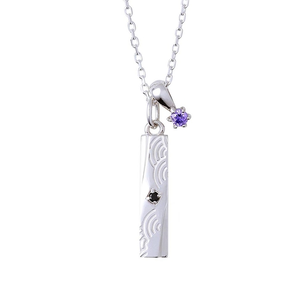 シンプルなバータイプのトップには神速一魂の世界観を取り込み、裏面にはユニット名を刻印しました。ユニットカラーのストーンチャームがワンポイントのデザインです。
