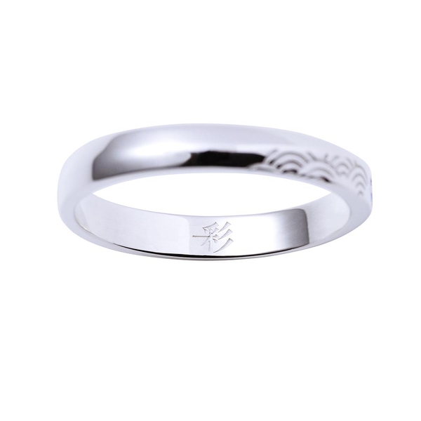 表面には和をイメージした模様をデザイン、中央にはユニットカラーストーンをセットし、内側にはユニット名を刻印しました。彩の世界観を取り込んだしのぎフォルムのデザインです。