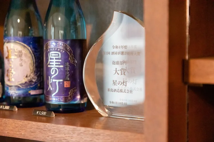 米島酒造は1948年に創業、沖縄本島から西に約100km離れた離島・久米島の造り酒屋です。現在4代目となる代表の田場氏が大切にしていることは「手間と時間を惜しまず妥協しない酒造り」。一つ一つ手作業で品質管理を行い、飲みやすく、しかし複雑で飽きの来ない味を目指した酒造りを続けています。造り手の五感を全力で注ぎ、手造りで管理の出来る小規模生産にこだわり続けており、製造された泡盛の約8割が久米島で消費されるため、島外にはなかなか出回らず、入手困難の酒として知られています。また、『第1回酒屋が選ぶ焼酎大賞』の泡盛部門で大賞を受賞するなど全国的に高い評価を得ています。