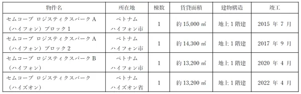 両物件とも2023年秋頃の竣工を目指してまいりますが、竣工すれば、セムコープ インフラ サービス社を通じて運営する物流倉庫は、ベトナム北部の4棟(ハイフォン市内の3棟及びハイズオン省内の1棟)と合わせて、計10棟・総賃貸面積約13万平方メートルとなります。