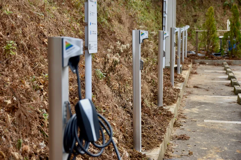今回設置する充電設備は6kW充電器と3kW充電コンセントです。6kW充電器は日帰り温泉やカフェを楽しみながら、3kW充電コンセントは宿泊しながらご利用いただけます。