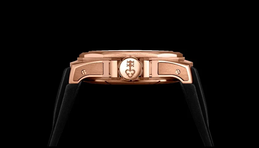 リューズにはブランドエンブレムである、空を指す鍵が彫られています。これは「革新」を象徴するコルムのシンボルであり、脈々と受け継がれた高い技術を独創的なアイデアで表現するコルムの指針を示しています。今作はコルムの様々なコレクションの中でも、その想いが最も強く反映されたモデルのひとつです。